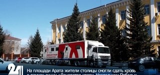 На площади Арата жители столицы смогли сдать кровь в рамках акции «Донорство крови. Наследники Победы»
