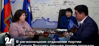 В Верховном Хурале (парламенте) РТ прошел приема граждан регионального отделения партии «Единая Россия» по социальным вопросам. Прием будет проходить до 4 февраля. (Сюжет от 31.01.2023)
